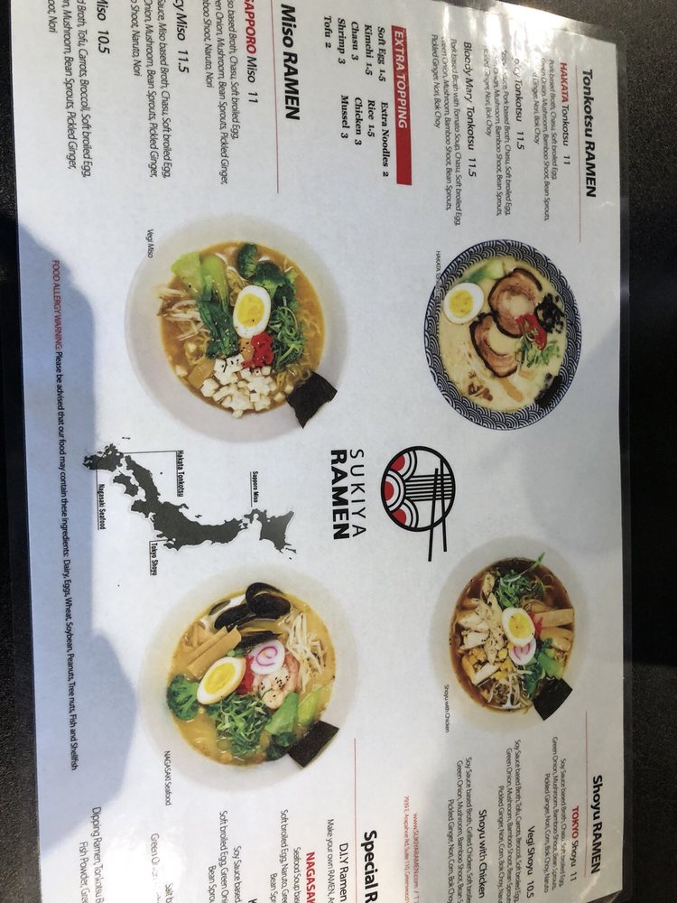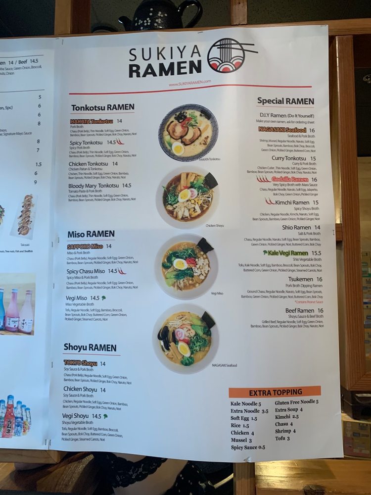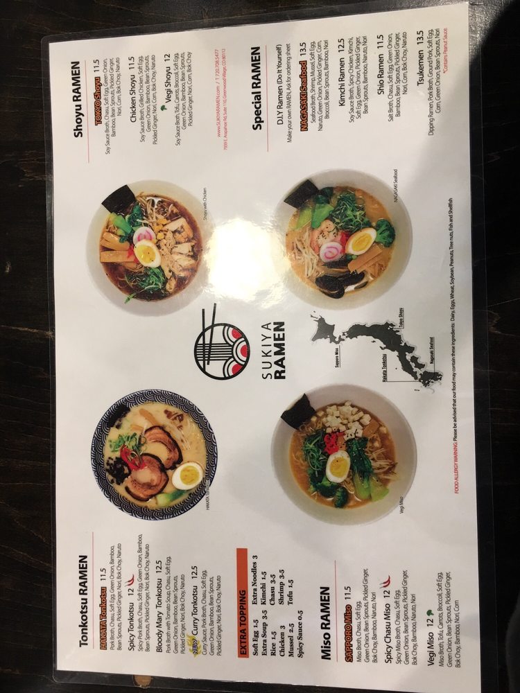 “ Sukiya Ramen has a great variety of ramen and other rice dishes. The restaurant is located in a busy strip mall right by Pindustry, so on a weekend parking can be tough. The restaurant is very intimate and has fairly limited seating on a busy weekend, however they do alot of take out business (what we do most often). They offer ramen from different parts of Japan and you can also make your own Ramen. I also really enjoy the terriyaki and rice dishes, or you can even get a poke bowl. Great little restaurant. ”